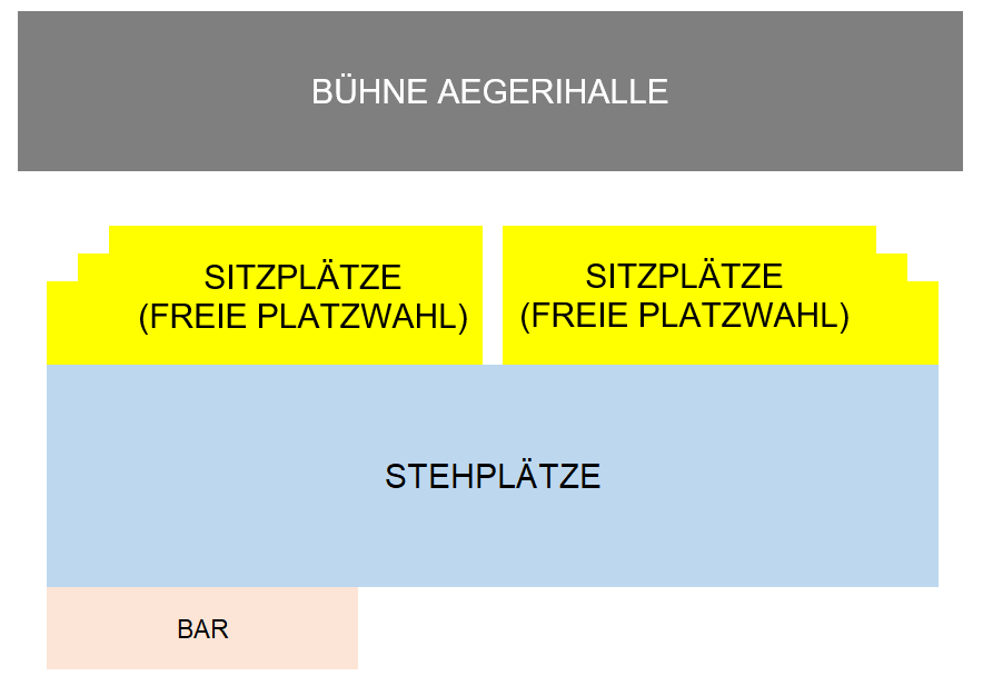 Sie können zwischen Sitzplätzen vor der Bühne oder Stehplätzen im hinteren Bereich wählen.